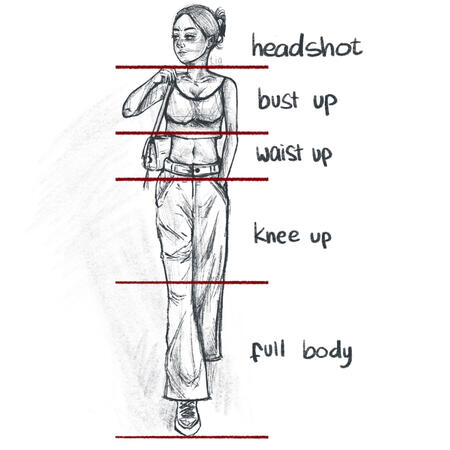 | Type | Headshot | Bust up | Waist up | Knee up | Full body |